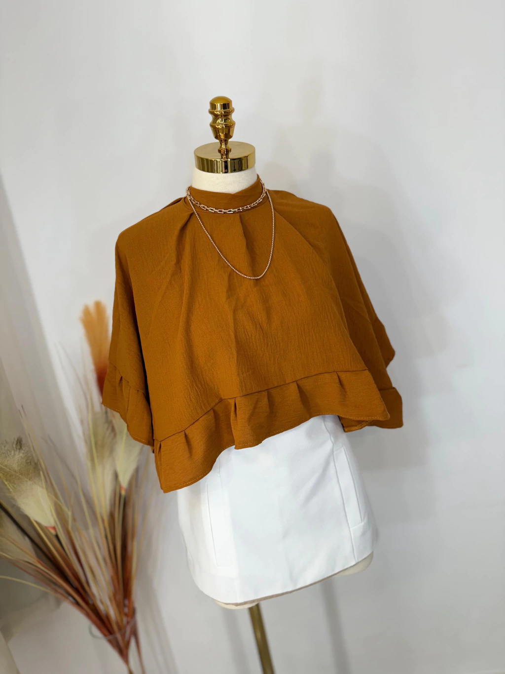 Produzida no tecido crepe duna 100% poliéster, com toque macio e com leve elastano.