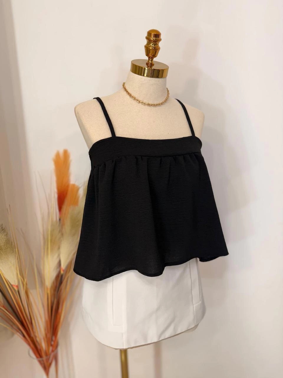 Produzida no tecido crepe duna 100% poliéster, com toque macio e com leve elastano.