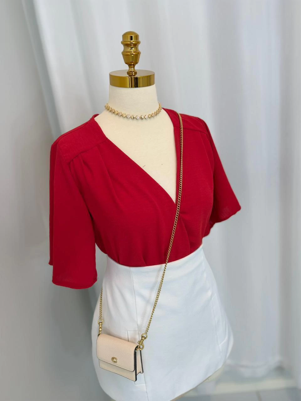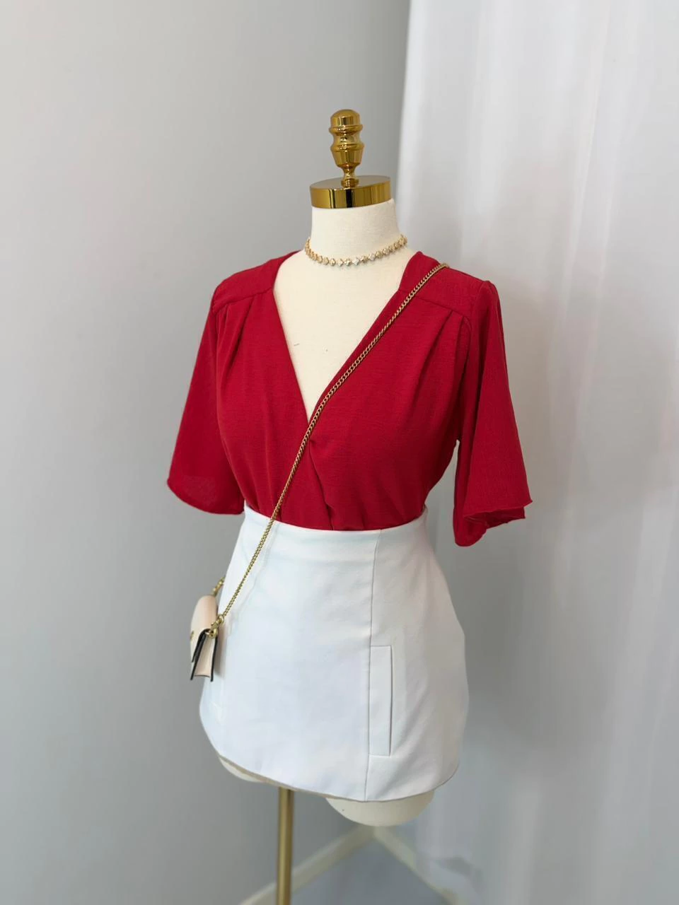 Produzida no tecido crepe duna 100% poliéster, com toque macio e com leve elastano.